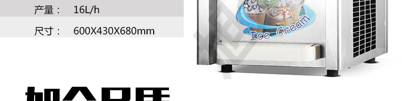 BQL-216T臺(tái)式冰淇淋機(jī),●選用國(guó)際名牌成熟制冷配套件和高效壓縮機(jī),融合旭眾精湛工藝輔以嚴(yán)格的質(zhì)量控制流程,使產(chǎn)品整體性能及品質(zhì)得以全面提升?!癫捎萌珨?shù)字電腦控制系統(tǒng),選用名牌優(yōu)質(zhì)電器元件,先進(jìn)的生產(chǎn)工藝,故障診斷,軟硬任意調(diào)制,自動(dòng)修復(fù)功能,安全精確,可靠性更高?!駥I(yè)成熟制冷系統(tǒng)設(shè)計(jì),選用世界名牌大功率專用壓縮機(jī),大大縮短冰淇淋成型時(shí)間,相同時(shí)間內(nèi)冰淇淋產(chǎn)量大幅度增加,使您生意火爆時(shí)依然得心應(yīng)手,為您創(chuàng)造財(cái)富。●安全平穩(wěn)的機(jī)械攪拌系統(tǒng),噪音更低、振動(dòng)更小,使整機(jī)運(yùn)行性能達(dá)到國(guó)際先進(jìn)水平?!翊_保進(jìn)料溫度在0°C~35°C;環(huán)境溫度5°C~40°C勻可正常使用。