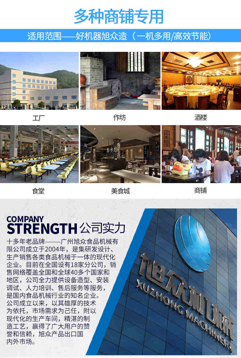 廣州旭眾食品機(jī)械有限公司是一家集科研開發(fā),生產(chǎn)設(shè)計(jì),營銷服務(wù)為一體的現(xiàn)代化生產(chǎn)企業(yè)。現(xiàn)代化生產(chǎn)車間,精湛制造技術(shù),所產(chǎn)機(jī)械歷經(jīng)市場重重考驗(yàn),不斷贏得海內(nèi)外客戶的贊譽(yù)。