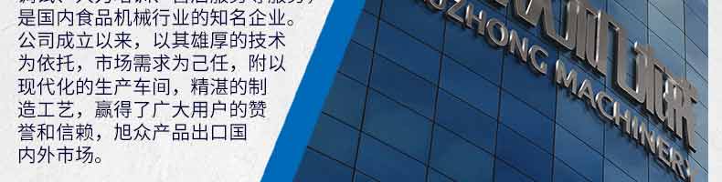 廣州旭眾食品機(jī)械有限公司是一家集科研開發(fā),生產(chǎn)設(shè)計(jì),營(yíng)銷服務(wù)為一體的現(xiàn)代化生產(chǎn)企業(yè)?,F(xiàn)代化生產(chǎn)車間,精湛制造技術(shù),所產(chǎn)機(jī)械歷經(jīng)市場(chǎng)重重考驗(yàn),不斷贏得海內(nèi)外客戶的贊譽(yù)。