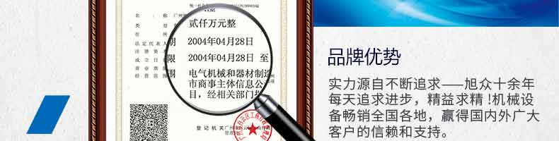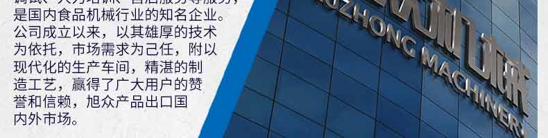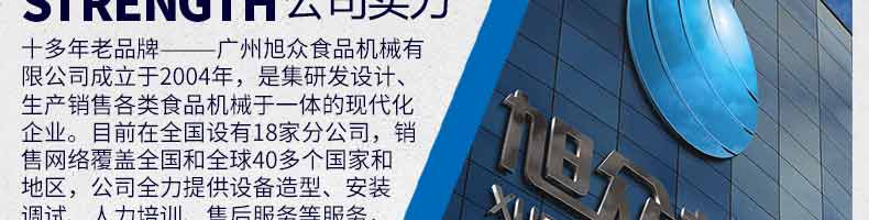 廣州旭眾食品機(jī)械有限公司是一家集科研開發(fā),生產(chǎn)設(shè)計,營銷服務(wù)為一體的現(xiàn)代化生產(chǎn)企業(yè)?,F(xiàn)代化生產(chǎn)車間,精湛制造技術(shù),所產(chǎn)機(jī)械歷經(jīng)市場重重考驗,不斷贏得海內(nèi)外客戶的贊譽(yù)。