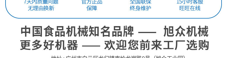 廣州旭眾食品機(jī)械有限公司是一家集科研開發(fā),生產(chǎn)設(shè)計(jì),營(yíng)銷服務(wù)為一體的現(xiàn)代化生產(chǎn)企業(yè)?,F(xiàn)代化生產(chǎn)車間,精湛制造技術(shù),所產(chǎn)機(jī)械歷經(jīng)市場(chǎng)重重考驗(yàn),不斷贏得海內(nèi)外客戶的贊譽(yù)。