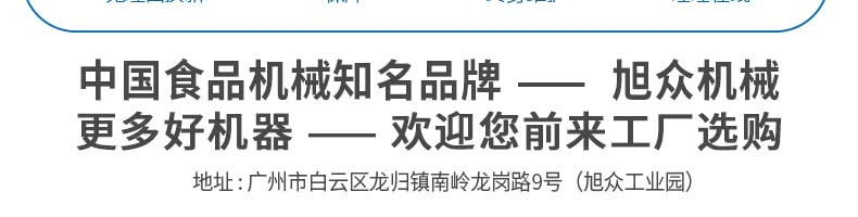 廣州旭眾食品機(jī)械有限公司是一家集科研開發(fā),生產(chǎn)設(shè)計(jì),營(yíng)銷服務(wù)為一體的現(xiàn)代化生產(chǎn)企業(yè)?,F(xiàn)代化生產(chǎn)車間,精湛制造技術(shù),所產(chǎn)機(jī)械歷經(jīng)市場(chǎng)重重考驗(yàn),不斷贏得海內(nèi)外客戶的贊譽(yù)。