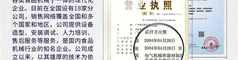 廣州旭眾食品機(jī)械有限公司是一家集科研開發(fā),生產(chǎn)設(shè)計(jì),營銷服務(wù)為一體的現(xiàn)代化生產(chǎn)企業(yè)。現(xiàn)代化生產(chǎn)車間,精湛制造技術(shù),所產(chǎn)機(jī)械歷經(jīng)市場重重考驗(yàn),不斷贏得海內(nèi)外客戶的贊譽(yù)。