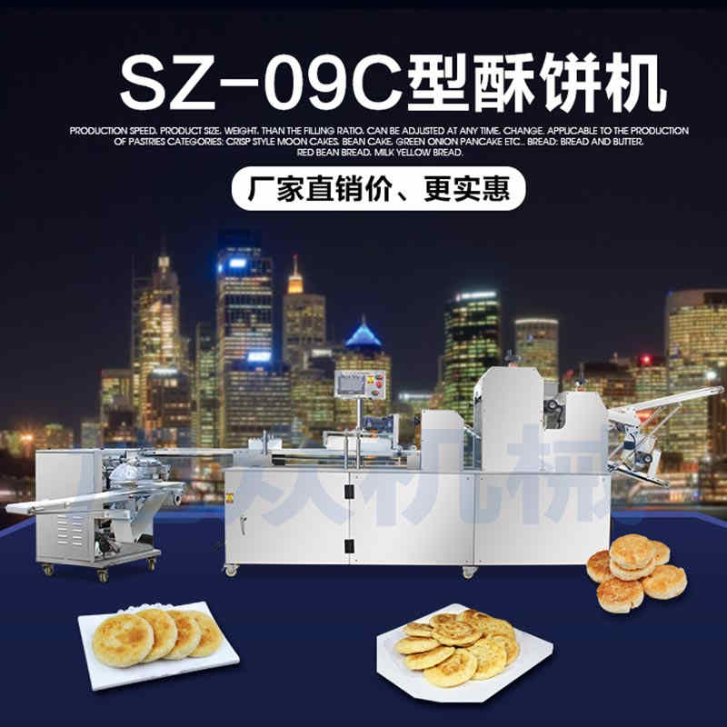 SZ-09C三段壓面蘇式月餅機,生產(chǎn)速度、制品大小、重量、皮餡比例可隨時調(diào)整、變更。適用于蘇式月餅、綠豆餅、老婆餅、蔥油餅、鮮花餅、肉松餅、金華酥餅等。適用于大、中型糕餅生產(chǎn)廠家,免費提供工藝技術(shù)。