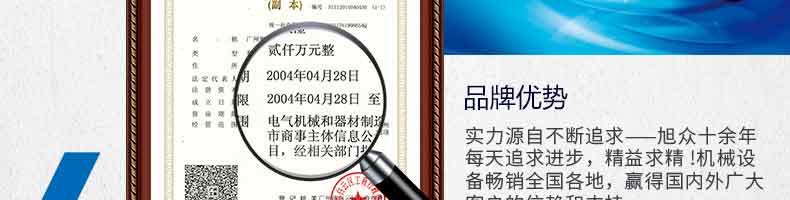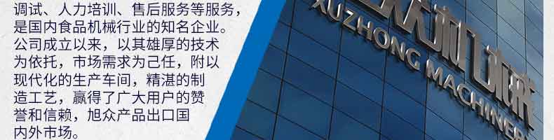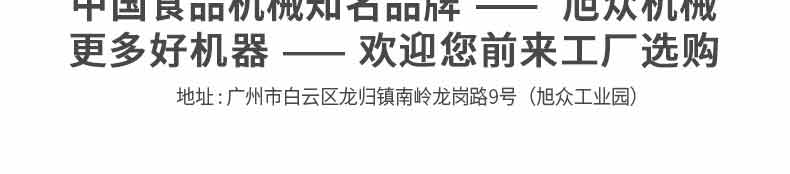 廣州旭眾食品機(jī)械有限公司是一家集科研開(kāi)發(fā),生產(chǎn)設(shè)計(jì),營(yíng)銷服務(wù)為一體的現(xiàn)代化生產(chǎn)企業(yè)?,F(xiàn)代化生產(chǎn)車間,精湛制造技術(shù),所產(chǎn)機(jī)械歷經(jīng)市場(chǎng)重重考驗(yàn),不斷贏得海內(nèi)外客戶的贊譽(yù)。