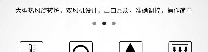 熱風(fēng)旋轉(zhuǎn)爐系列,多項(xiàng)核心技術(shù)滿足您的需求大型熱風(fēng)旋轉(zhuǎn)爐,雙風(fēng)機(jī)設(shè)計(jì),出口品質(zhì),準(zhǔn)確調(diào)控,操作簡單。32盤旋轉(zhuǎn)爐大容量熱風(fēng)旋轉(zhuǎn)爐,爐門釆用緊扣工藝,密封性更強(qiáng),適合商用。