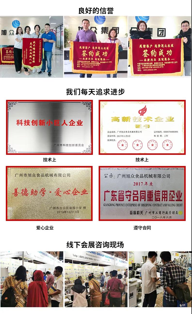 廣州旭眾食品機械有限公司是一家集科研開發(fā),生產(chǎn)設計,營銷服務為一體的現(xiàn)代化生產(chǎn)企業(yè)?,F(xiàn)代化生產(chǎn)車間,精湛制造技術,所產(chǎn)機械歷經(jīng)市場重重考驗,不斷贏得海內(nèi)外客戶的贊譽。