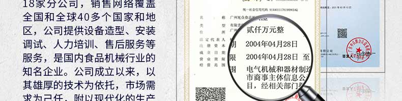 廣州旭眾食品機(jī)械有限公司是一家集科研開(kāi)發(fā),生產(chǎn)設(shè)計(jì),營(yíng)銷(xiāo)服務(wù)為一體的現(xiàn)代化生產(chǎn)企業(yè)?,F(xiàn)代化生產(chǎn)車(chē)間,精湛制造技術(shù),所產(chǎn)機(jī)械歷經(jīng)市場(chǎng)重重考驗(yàn),不斷贏得海內(nèi)外客戶的贊譽(yù)。
