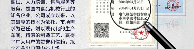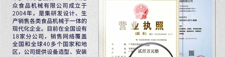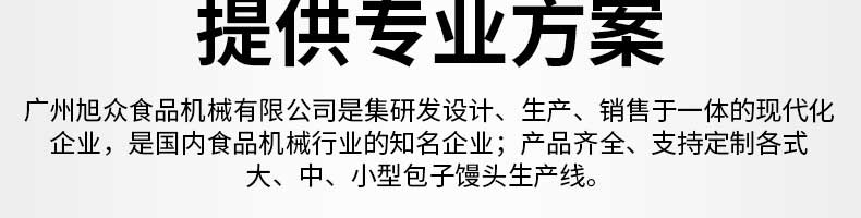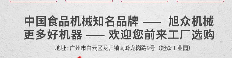 廣州旭眾食品機械有限公司是一家集科研開發(fā),生產(chǎn)設計,營銷服務為一體的現(xiàn)代化生產(chǎn)企業(yè)?,F(xiàn)代化生產(chǎn)車間,精湛制造技術,所產(chǎn)機械歷經(jīng)市場重重考驗,不斷贏得海內(nèi)外客戶的贊譽。