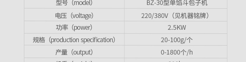 BZ-30型單餡斗包子機(jī),可生產(chǎn)豆沙包、南瓜餅、肉包、小籠包、菜包、圓饅頭、奶黃包、叉燒包、湯包、水晶包等幾十種包餡制品。適用于個(gè)體戶、速凍食品廠、學(xué)校等各種工作場(chǎng)所??蓾M足不同客戶群體。免費(fèi)提供工藝技術(shù)。