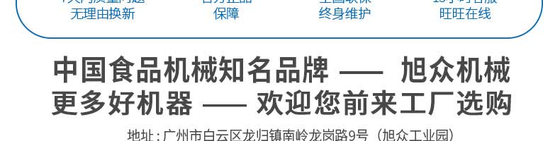 廣州旭眾食品機械有限公司是一家集科研開發(fā),生產設計,營銷服務為一體的現(xiàn)代化生產企業(yè)?,F(xiàn)代化生產車間,精湛制造技術,所產機械歷經市場重重考驗,不斷贏得海內外客戶的贊譽。