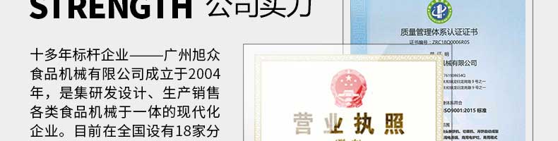 廣州旭眾食品機(jī)械有限公司是一家集科研開發(fā),生產(chǎn)設(shè)計(jì),營(yíng)銷服務(wù)為一體的現(xiàn)代化生產(chǎn)企業(yè)?,F(xiàn)代化生產(chǎn)車間,精湛制造技術(shù),所產(chǎn)機(jī)械歷經(jīng)市場(chǎng)重重考驗(yàn),不斷贏得海內(nèi)外客戶的贊譽(yù)。