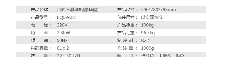 BQL-928T臺式冰淇淋機(jī),1.選用國際牌壓縮機(jī),輔以旭眾精湛工藝,大大縮短冰淇淋成型時(shí)間,高效節(jié)能;2.全新液晶智能觸控面板,簡單明了,多功能易操作;3.全新升級專業(yè)膨化泵,膨化率高,產(chǎn)量增加30%;4.一鍵清洗功能,省時(shí)方便;5.主要部件采用不銹鋼材質(zhì),時(shí)尚美觀,持久耐用;6.先進(jìn)的機(jī)械攪拌系統(tǒng),機(jī)器運(yùn)行穩(wěn)定可靠,低噪音,產(chǎn)品口感爽滑細(xì)嫩。