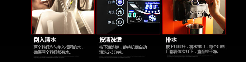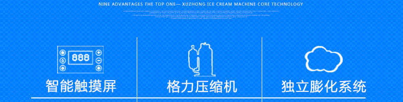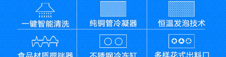 BQL-828立式冰淇淋機,1.選用國際牌壓縮機,輔以旭眾精湛工藝,大大縮短冰淇淋成型時間,高效節(jié)能;2.全新液晶智能觸控面板,簡單明了,多功能易操作;3.全新升級專業(yè)膨化泵,膨化率高,產量增加30%;4.一鍵清洗功能,省時方便;5.主要部件采用不銹鋼材質,時尚美觀,持久耐用;6.先進的機械攪拌系統(tǒng),機器運行穩(wěn)定可靠,低噪音,產品口感爽滑細嫩。