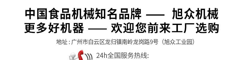 廣州旭眾食品機械有限公司是一家集科研開發(fā),生產設計,營銷服務為一體的現(xiàn)代化生產企業(yè)?,F(xiàn)代化生產車間,精湛制造技術,所產機械歷經市場重重考驗,不斷贏得海內外客戶的贊譽。