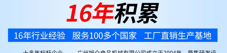 廣州旭眾食品機(jī)械有限公司是一家集科研開發(fā),生產(chǎn)設(shè)計,營銷服務(wù)為一體的現(xiàn)代化生產(chǎn)企業(yè)?,F(xiàn)代化生產(chǎn)車間,精湛制造技術(shù),所產(chǎn)機(jī)械歷經(jīng)市場重重考驗,不斷贏得海內(nèi)外客戶的贊譽(yù)。