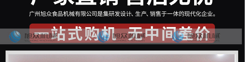 廣州旭眾食品機械有限公司是一家集科研開發(fā),生產(chǎn)設(shè)計,營銷服務(wù)為一體的現(xiàn)代化生產(chǎn)企業(yè)?,F(xiàn)代化生產(chǎn)車間,精湛制造技術(shù),所產(chǎn)機械歷經(jīng)市場重重考驗,不斷贏得海內(nèi)外客戶的贊譽。