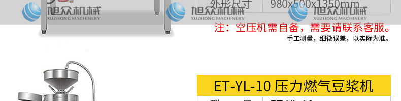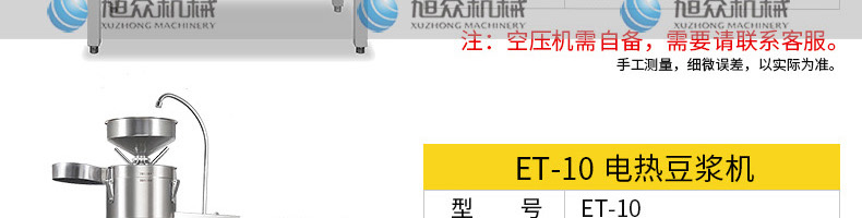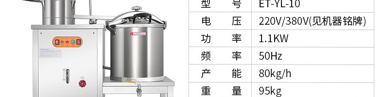 ET-YL-09壓力電熱豆?jié){機(jī),多功能商用豆?jié){機(jī),細(xì)、香、濃。我們珍惜每一顆大豆,讓每顆大豆進(jìn)發(fā)營養(yǎng)價(jià)值。旭眾豆?jié){機(jī)做您的招牌豆?jié){打磨細(xì)膩、口感香濃、回味無窮。