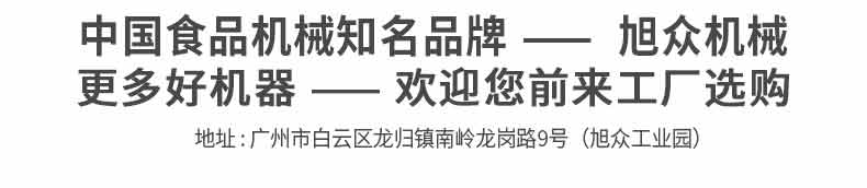 廣州旭眾食品機(jī)械有限公司是一家集科研開發(fā),生產(chǎn)設(shè)計,營銷服務(wù)為一體的現(xiàn)代化生產(chǎn)企業(yè)?,F(xiàn)代化生產(chǎn)車間,精湛制造技術(shù),所產(chǎn)機(jī)械歷經(jīng)市場重重考驗,不斷贏得海內(nèi)外客戶的贊譽(yù)。