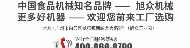 廣州旭眾食品機械有限公司是一家集科研開發(fā),生產(chǎn)設(shè)計,營銷服務(wù)為一體的現(xiàn)代化生產(chǎn)企業(yè)?,F(xiàn)代化生產(chǎn)車間,精湛制造技術(shù),所產(chǎn)機械歷經(jīng)市場重重考驗,不斷贏得海內(nèi)外客戶的贊譽。