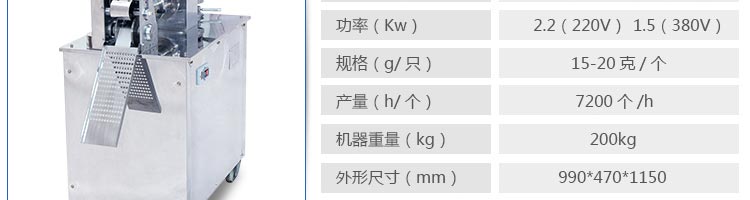 JGB-120-5B型餃子機,本機是一款可生產(chǎn)各種肉餡、肉菜混合餡、全菜餡及其他種餡餃子的設(shè)備。一機多用途,只要更換模具,就可制作不同的食品,如春卷、餛飩、咖喱角、鍋貼等。適用于賓館、飯店、餐廳、團體食堂加工,幼兒園、速凍餃子生產(chǎn)。