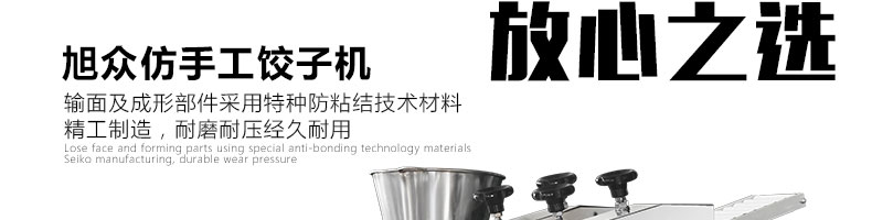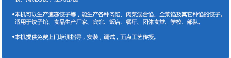 JGB-180餃子機(jī),先進(jìn)的自動餃子生產(chǎn)設(shè)備,包括主動壓皮部分、自動供餡部分、自動包合部分、自動成品輸送部分,并且只要更換模具,就可制鍋貼等食品。適合食品速凍廠、飯店、廠礦學(xué)校食堂等制作包餡面制品單位使用。