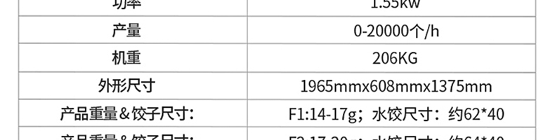210豪華餃子機,實力強勁、超高效率一小時可做大約20000個餃子!可生產(chǎn)速凍餃子、各種肉餡、肉菜混合餡、全菜餡以及其他種餡的餃子。