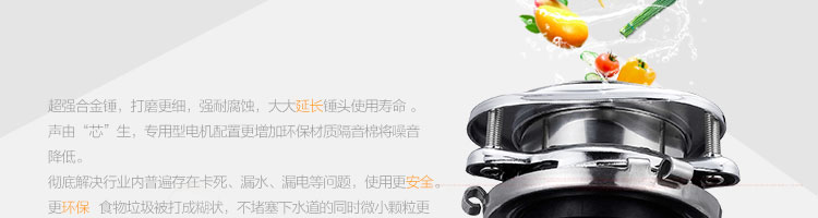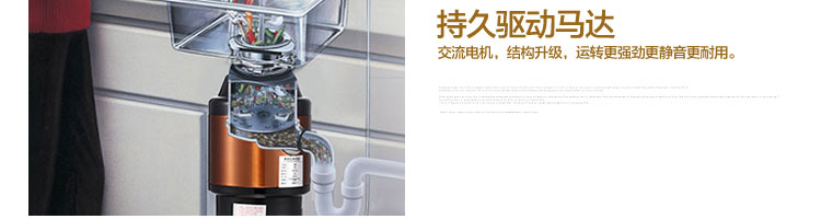 DCLQ38-廚房垃圾處理器,該機擁有獨特的粉碎功能,使所有垃圾研磨吸毒真正低于3毫米,用戶不用為管道堵塞而煩惱,粉碎后粗、細兩種垃圾通過濾孔自動分離,成漿狀的細垃圾隨水流流入管道,粗的垃圾會稍停留在研磨倉繼續(xù)粉碎,形成粉末狀后,再隨水流流入管道,客戶可以放心使用。
