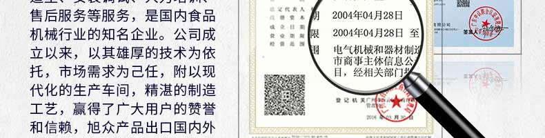 廣州旭眾食品機(jī)械有限公司是一家集科研開發(fā),生產(chǎn)設(shè)計(jì),營(yíng)銷服務(wù)為一體的現(xiàn)代化生產(chǎn)企業(yè)?,F(xiàn)代化生產(chǎn)車間,精湛制造技術(shù),所產(chǎn)機(jī)械歷經(jīng)市場(chǎng)重重考驗(yàn),不斷贏得海內(nèi)外客戶的贊譽(yù)。