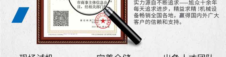 廣州旭眾食品機(jī)械有限公司是一家集科研開發(fā),生產(chǎn)設(shè)計(jì),營(yíng)銷服務(wù)為一體的現(xiàn)代化生產(chǎn)企業(yè)?,F(xiàn)代化生產(chǎn)車間,精湛制造技術(shù),所產(chǎn)機(jī)械歷經(jīng)市場(chǎng)重重考驗(yàn),不斷贏得海內(nèi)外客戶的贊譽(yù)。