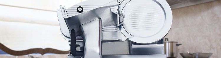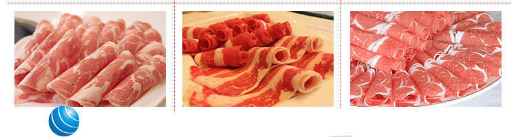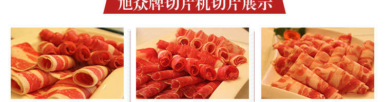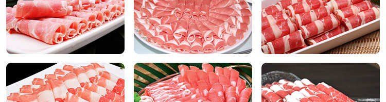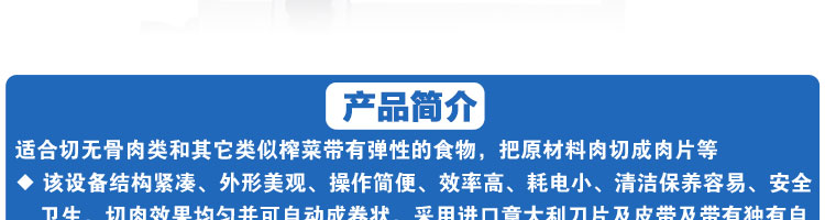 臺式全自動切片機,適合切無骨肉類和其他類似榨菜帶有彈性的食物,把原材料肉切成肉片,并可自動成卷狀??汕信H馄⒀蛉馄?/p>