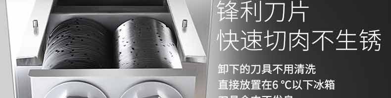XZ-QX320-切肉機(jī),小型切肉機(jī)是一款主要對(duì)肉類進(jìn)行加工的設(shè)備,配置單層刀具一次性切肉片,二次切肉絲,再切成料。刀具采取外置懸臂式設(shè)計(jì),拆洗方便,衛(wèi)生更有保障;配置多種刀具,可加工不同厚度的肉片,實(shí)現(xiàn)一機(jī)多用;機(jī)內(nèi)裝有安全保護(hù)開頭,刀具外露時(shí),機(jī)器自鎖不能啟動(dòng),以保安全;卸下的刀具,不用清洗直接放置在6攝氏度以下的冰箱里,刀具余肉不發(fā)臭。刀片用特殊不銹鋼材料制造,經(jīng)久耐用。