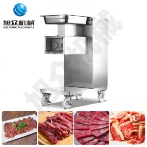 XZ-QE切肉機(jī),是一款可方便移動(dòng)的肉類加工設(shè)備,配置單層刀具一次性切肉片,二次切肉絲,再切成粒。底座設(shè)置有滑輪,移動(dòng)靈活,輕松便捷;刀具采取外置懸臂式設(shè)計(jì),拆洗方便,衛(wèi)生更有保障;配置多種刀具,可加工不同厚度的肉片,實(shí)現(xiàn)一機(jī)多用;機(jī)內(nèi)裝有安全保護(hù)開頭,刀具外露時(shí),機(jī)器自鎖不能啟動(dòng),以保安全;刀片用特殊不銹鋼材料制造,經(jīng)久耐用;卸下的刀具,不用清洗直接放置在6攝氏度以下的冰箱里,刀具余肉不發(fā)臭。