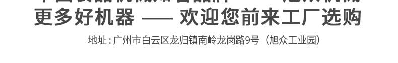 廣州旭眾食品機(jī)械有限公司是一家集科研開發(fā),生產(chǎn)設(shè)計(jì),營銷服務(wù)為一體的現(xiàn)代化生產(chǎn)企業(yè)。現(xiàn)代化生產(chǎn)車間,精湛制造技術(shù),所產(chǎn)機(jī)械歷經(jīng)市場重重考驗(yàn),不斷贏得海內(nèi)外客戶的贊譽(yù)。