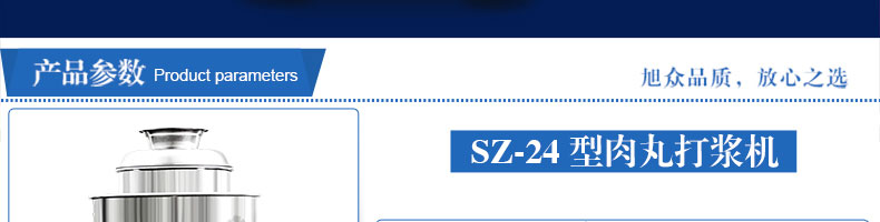 SZ-24型高速肉丸打漿機(jī),高速肉丸打漿機(jī)選用不銹鋼,生產(chǎn)過程中改善了肉質(zhì)脂肪纖維,生產(chǎn)出的丸子外表光滑細(xì)膩、低脂、口感爽脆、彈性好、韌性好,是潮州肉丸的專用打漿機(jī)。