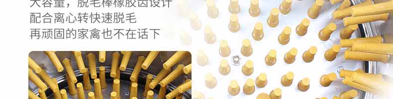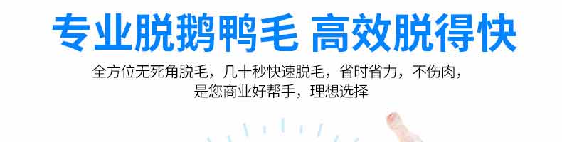 鵝鴨型脫毛機(jī),本機(jī)用于雞、鴨、鵝宰殺后的自動(dòng)脫毛,還可用于脫姜皮、脫馬鈴薯皮、脫魚鱗等農(nóng)產(chǎn)品。本機(jī)操作簡單,省力、省時(shí)間、工作效率相當(dāng)于十多個(gè)人的手工勞動(dòng)。