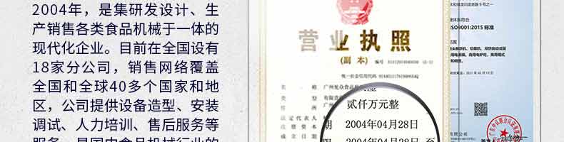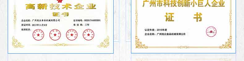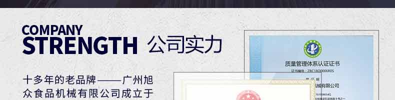 廣州旭眾食品機(jī)械有限公司是一家集科研開發(fā),生產(chǎn)設(shè)計(jì),營(yíng)銷服務(wù)為一體的現(xiàn)代化生產(chǎn)企業(yè)?,F(xiàn)代化生產(chǎn)車間,精湛制造技術(shù),所產(chǎn)機(jī)械歷經(jīng)市場(chǎng)重重考驗(yàn),不斷贏得海內(nèi)外客戶的贊譽(yù)。