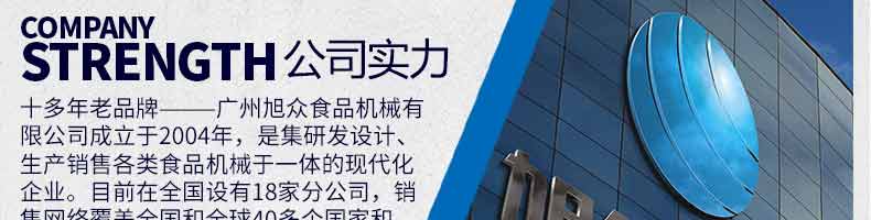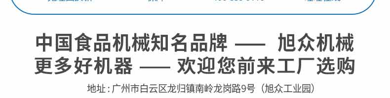 廣州旭眾食品機械有限公司是一家集科研開發(fā),生產設計,營銷服務為一體的現代化生產企業(yè)?,F代化生產車間,精湛制造技術,所產機械歷經市場重重考驗,不斷贏得海內外客戶的贊譽。
