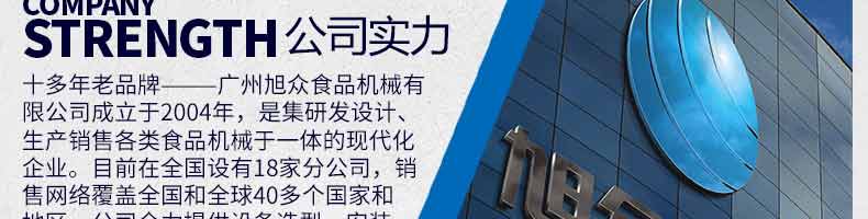 廣州旭眾食品機(jī)械有限公司是一家集科研開發(fā),生產(chǎn)設(shè)計(jì),營銷服務(wù)為一體的現(xiàn)代化生產(chǎn)企業(yè)?,F(xiàn)代化生產(chǎn)車間,精湛制造技術(shù),所產(chǎn)機(jī)械歷經(jīng)市場重重考驗(yàn),不斷贏得海內(nèi)外客戶的贊譽(yù)。