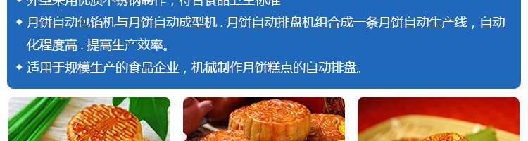 SZ-08型月餅自動(dòng)排盤機(jī),可同于制作各種月餅。適用于蛋糕房、休閑食品廠、食品加工產(chǎn)、面包房、月餅加工廠、超市、學(xué)校、食堂等各種工作場所??蓾M足不同客戶群體。免費(fèi)提供工藝技術(shù)。