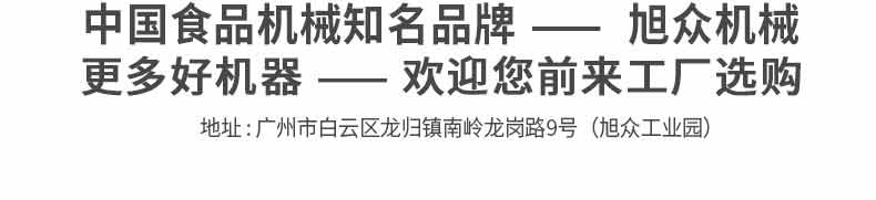 廣州旭眾食品機械有限公司是一家集科研開發(fā),生產(chǎn)設(shè)計,營銷服務(wù)為一體的現(xiàn)代化生產(chǎn)企業(yè)?,F(xiàn)代化生產(chǎn)車間,精湛制造技術(shù),所產(chǎn)機械歷經(jīng)市場重重考驗,不斷贏得海內(nèi)外客戶的贊譽。