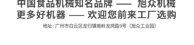 廣州旭眾食品機(jī)械有限公司是一家集科研開發(fā),生產(chǎn)設(shè)計(jì),營(yíng)銷服務(wù)為一體的現(xiàn)代化生產(chǎn)企業(yè)?,F(xiàn)代化生產(chǎn)車間,精湛制造技術(shù),所產(chǎn)機(jī)械歷經(jīng)市場(chǎng)重重考驗(yàn),不斷贏得海內(nèi)外客戶的贊譽(yù)。